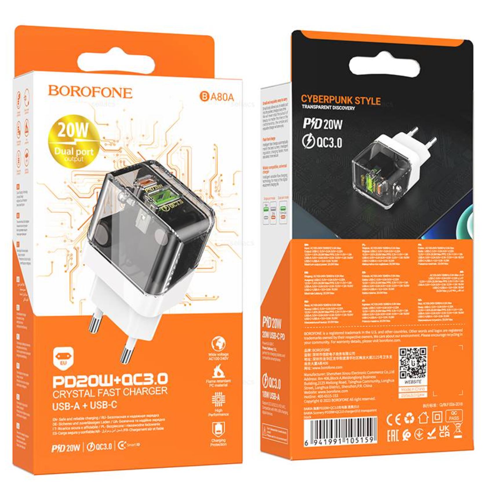 СЗУ BOROFONE BA80A Scenery PD20W+QC3.0 charger (EU) (прозрачно черный)