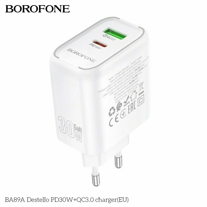СЗУ BOROFONE BA89A Destello PD30W+QC3.0 белый