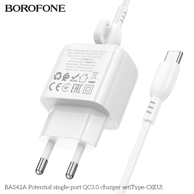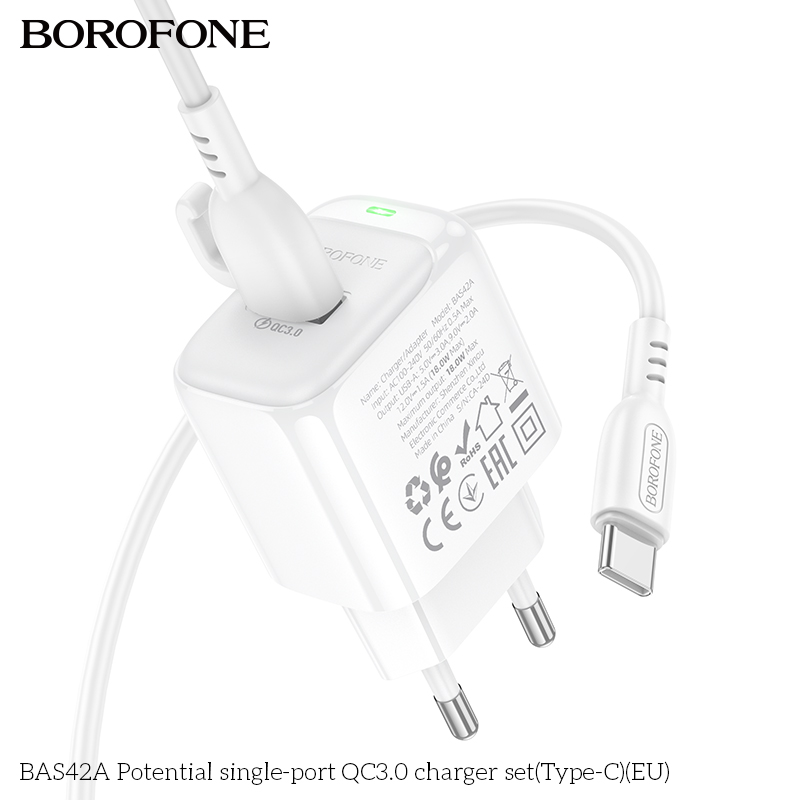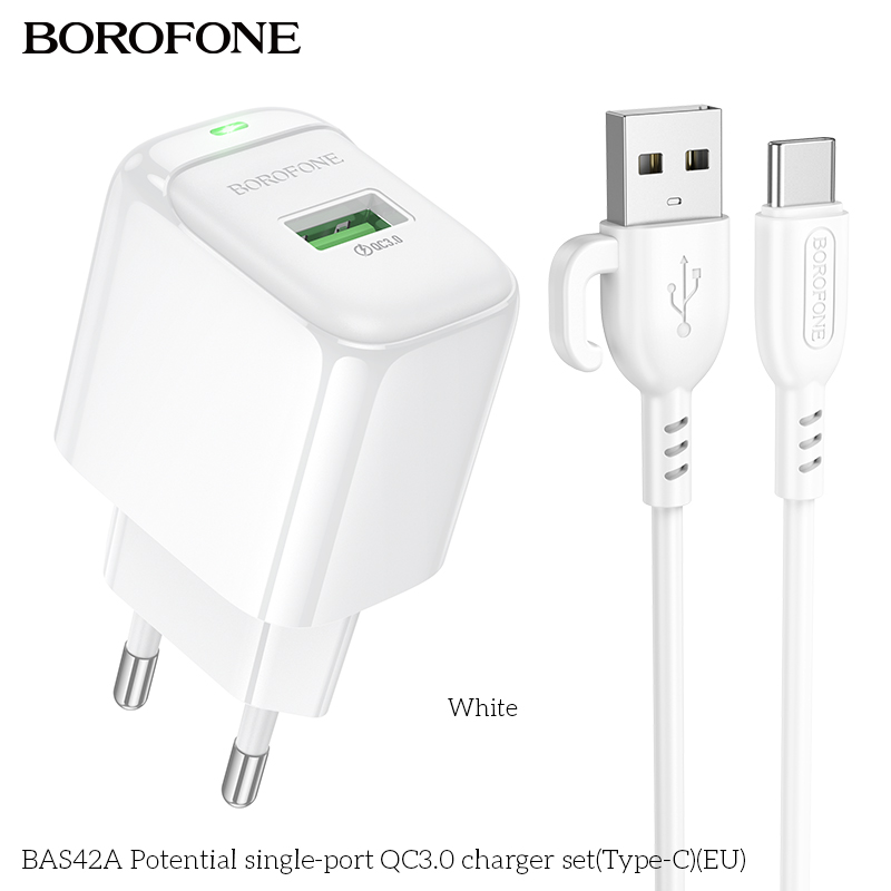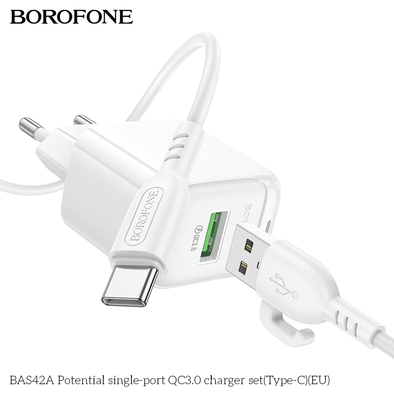 СЗУ BOROFONE BAS42A Potential single-port QC3.0 charger set Type-C EU белый