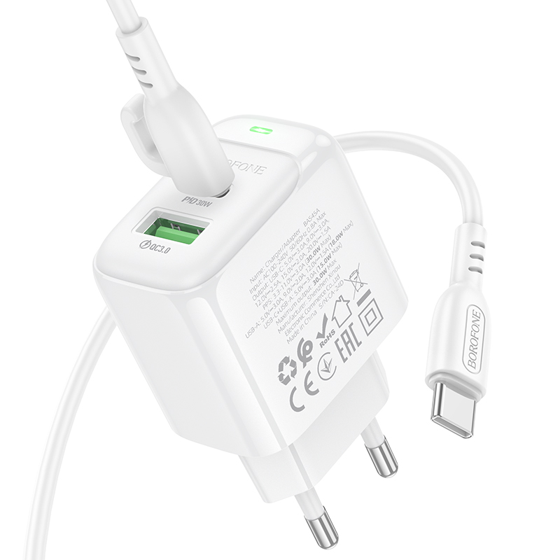 СЗУ BOROFONE BAS45A Potential PD30W+QC3.0 charger set C to C EU белый