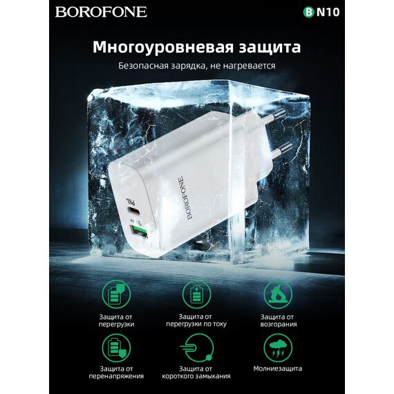 СЗУ Borofone BN10 Sunlight PD65W dual port(1A1C) charger(EU), white