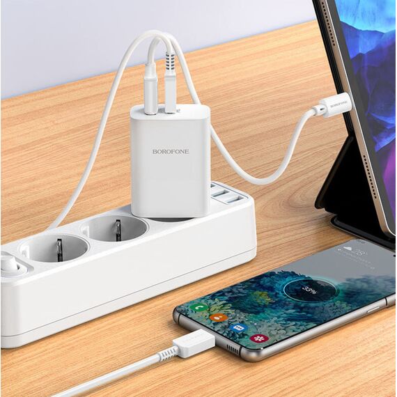 СЗУ BOROFONE BN10 Sunlight PD65W dual port(1A1C) charger set Type-C to Type-C (белый)