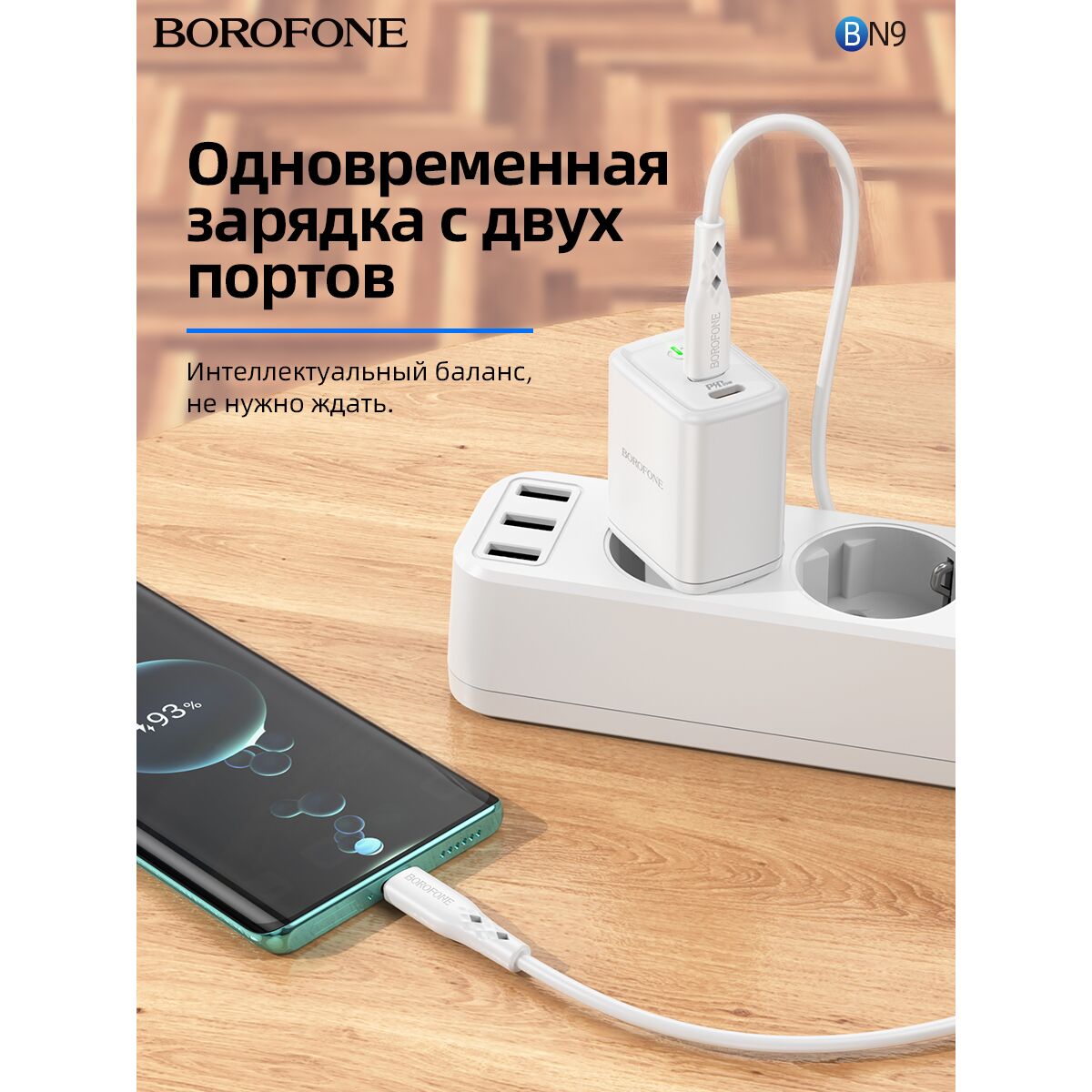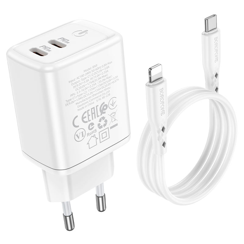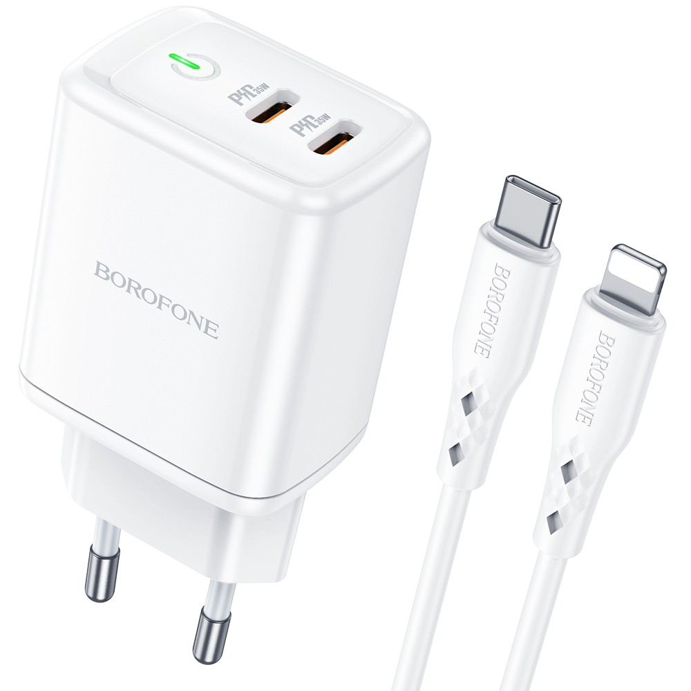 СЗУ Borofone BN9 Reacher PD35W dual port charger set (Type-C to Lightning)(EU), white