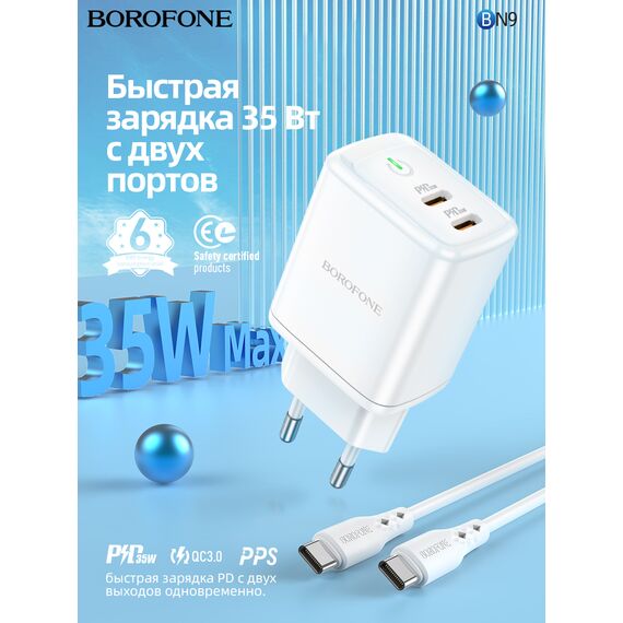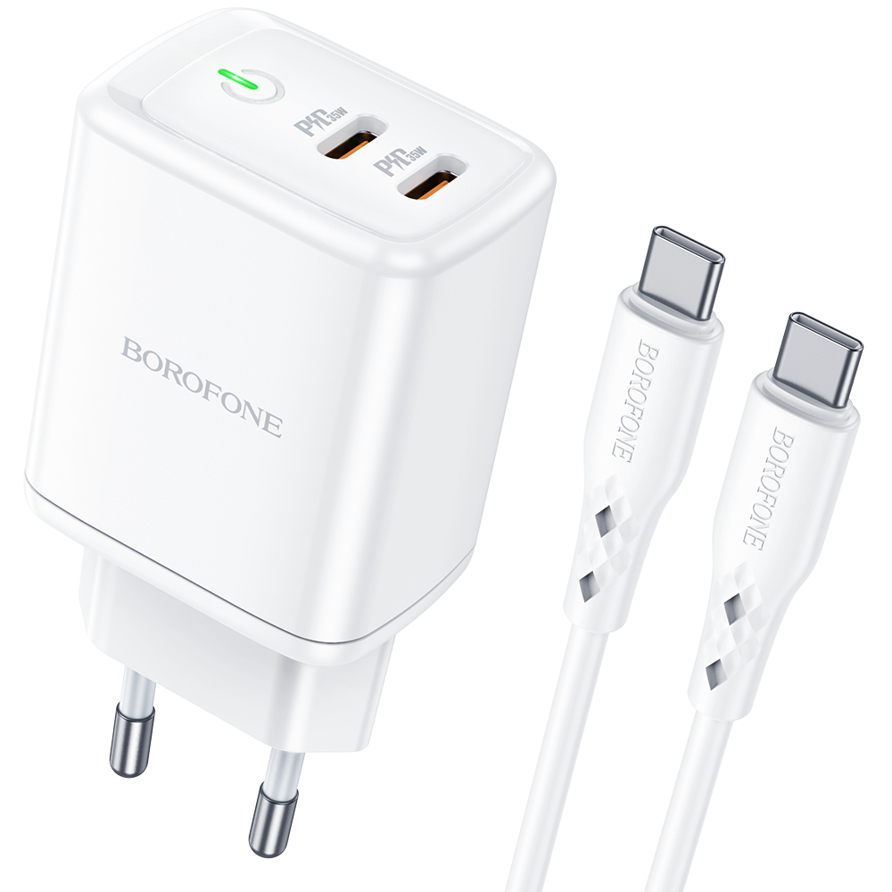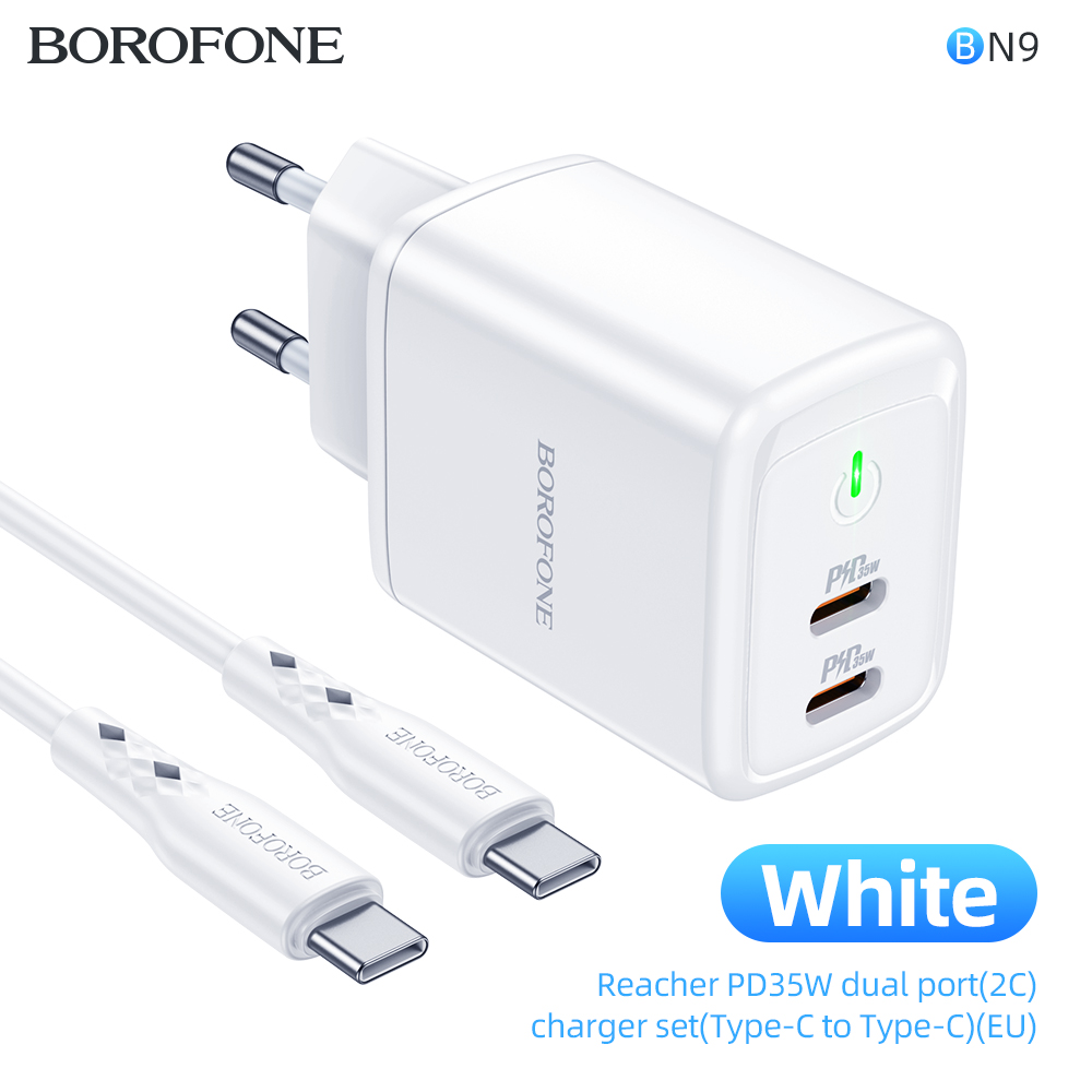 СЗУ Borofone BN9 Reacher PD35W dual port charger set (Type-C to Type-C) (EU), white