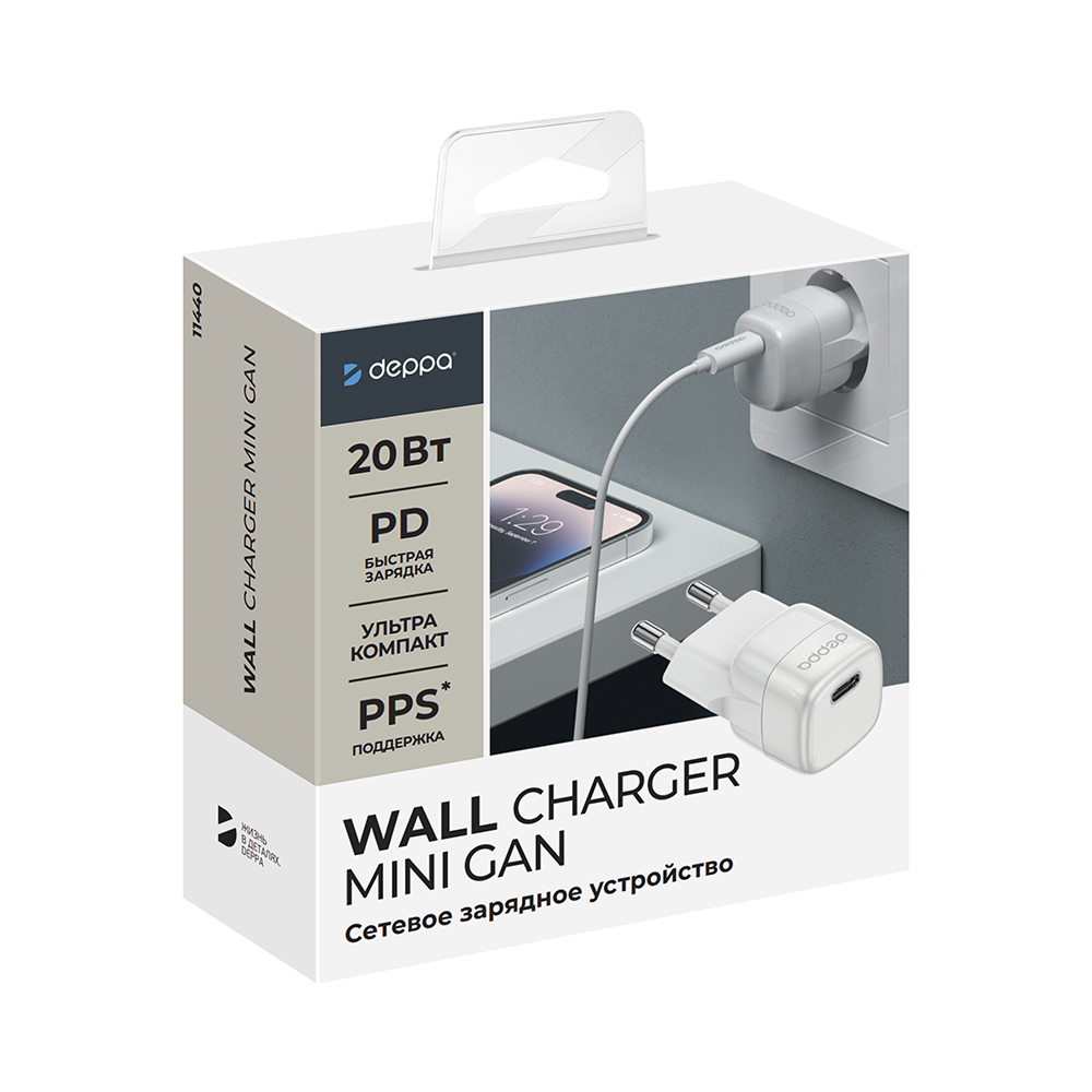 СЗУ Deppa 11440 Type-C PD mini GaN 20Вт White
