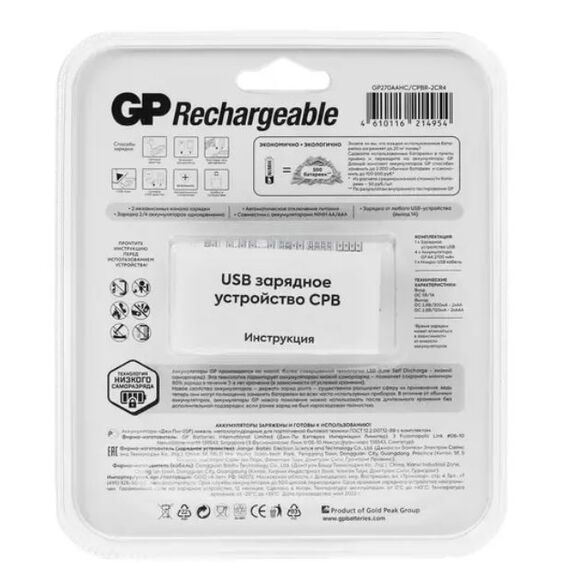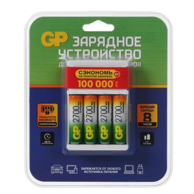 СЗУ GP 270AAHC/CPB-2CR4 (4670042085929) AA/AAA Ni-MH, 4xAA 2700mAh, белый