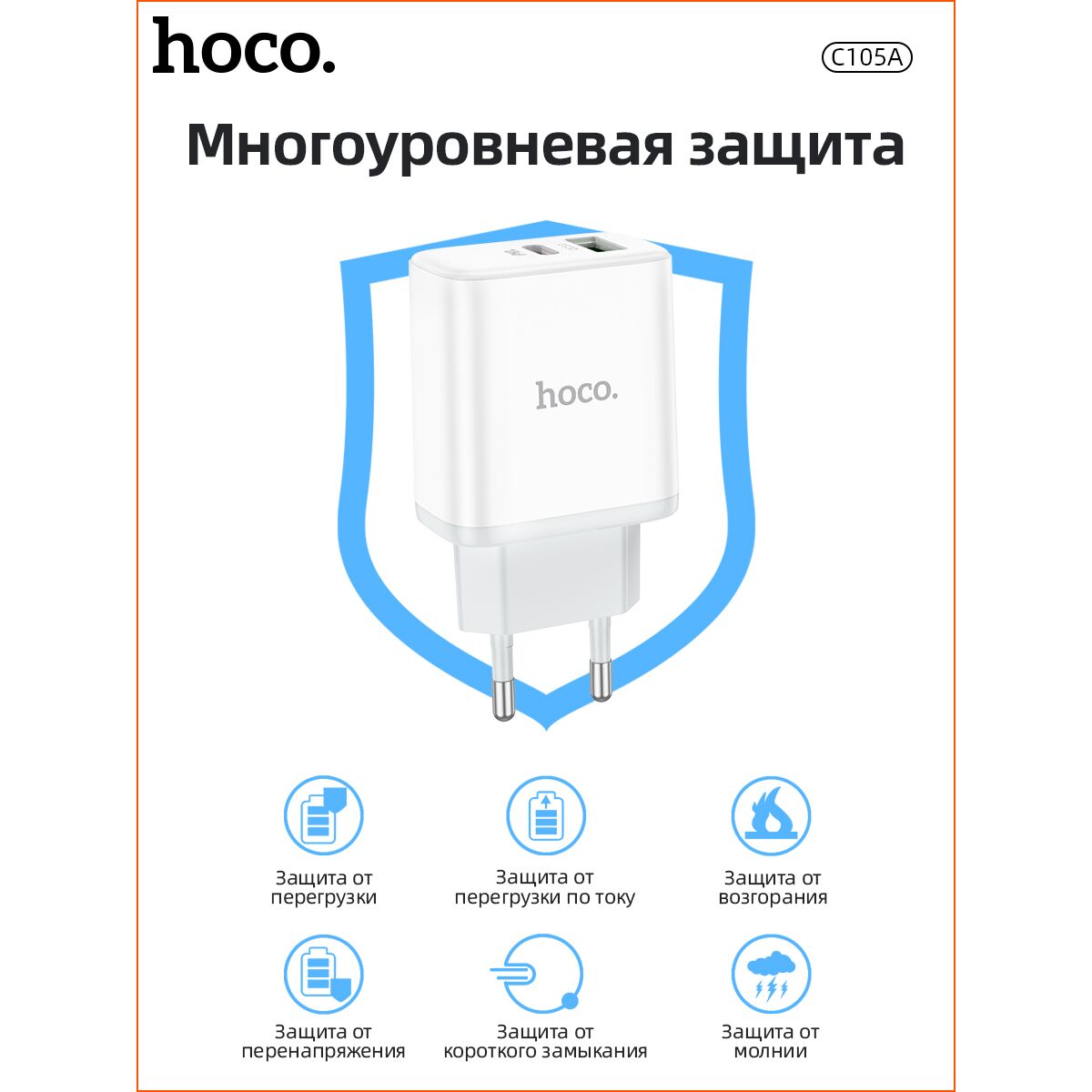 СЗУ Hoco C105A Stage dual port PD20W+QC3.0 charger, white