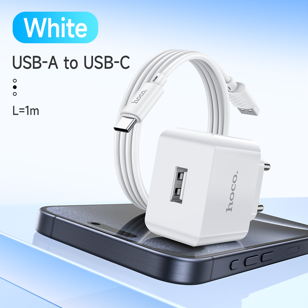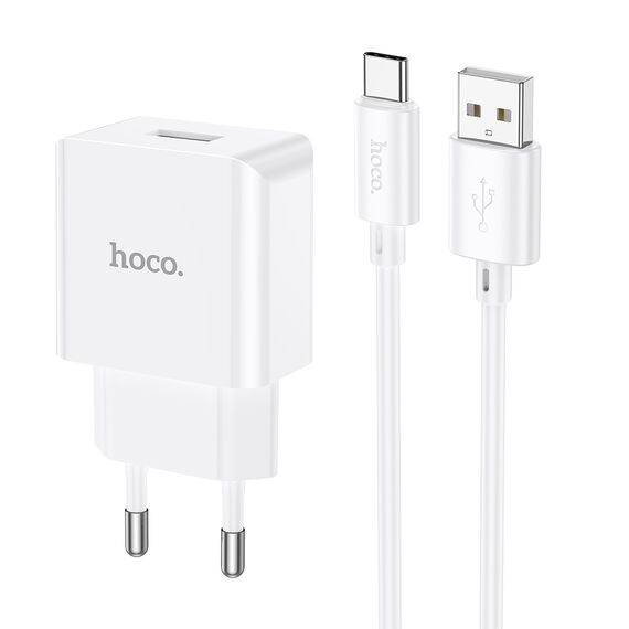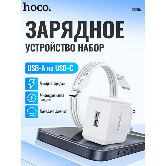 СЗУ HOCO C106A Leisure single port charger+Type-C (EU), (белый)