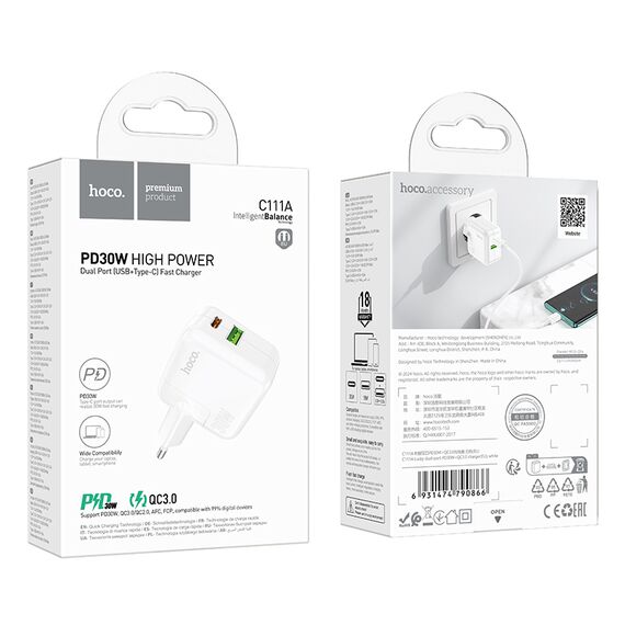 СЗУ HOCO C111A Lucky dual-port PD30W+QC3.0 charger EU белый