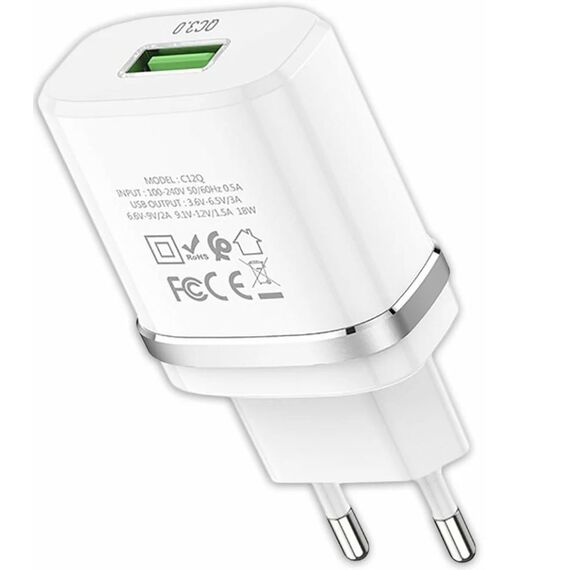СЗУ Hoco C12Q 18W (6931474716279) 1USB, Quick Charge, 3A, кабель microUSB, черный