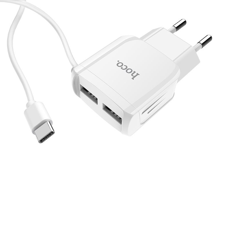СЗУ HOCO C59A Mega joy 2USB + встроенный кабель Type-C, 2.1A, белый (о)