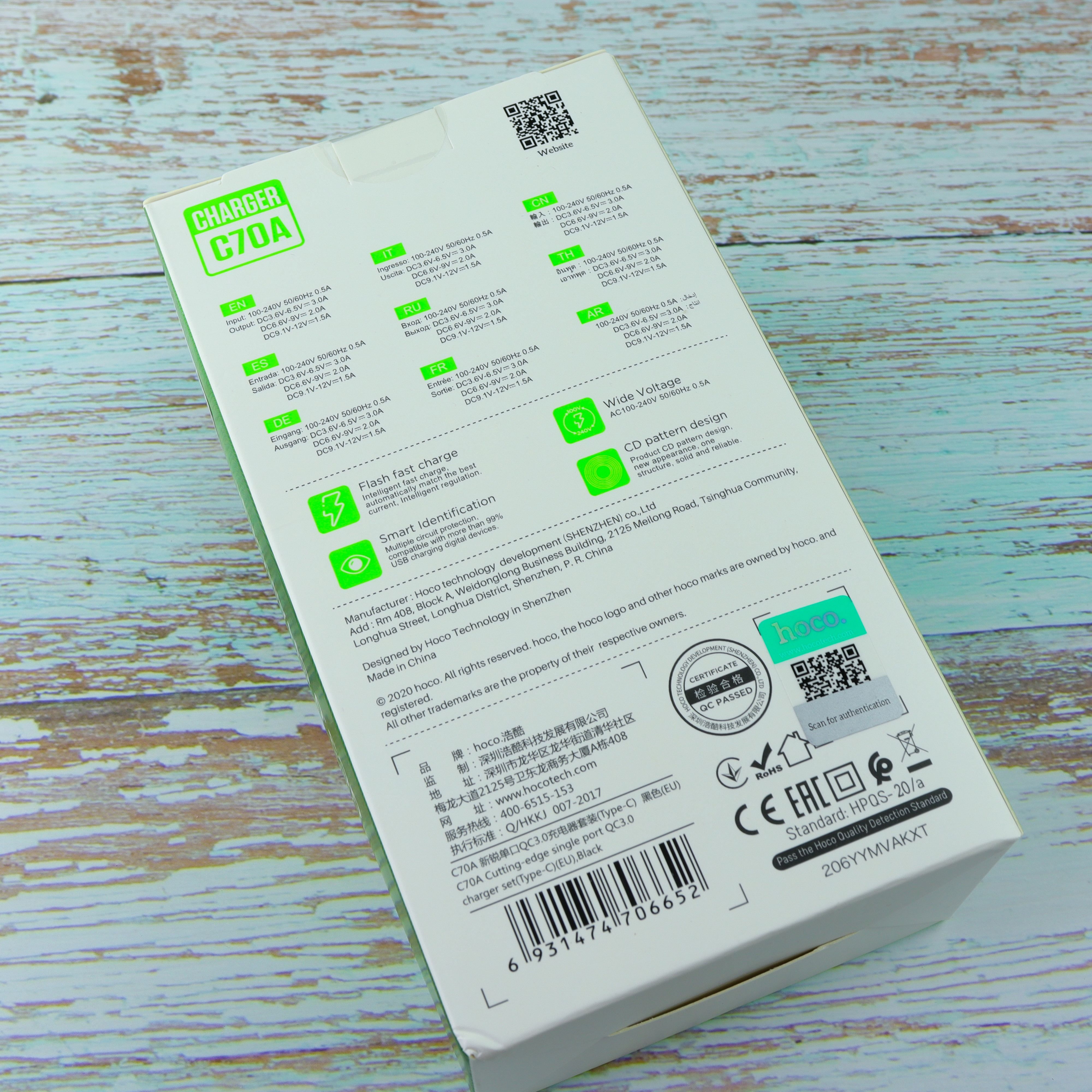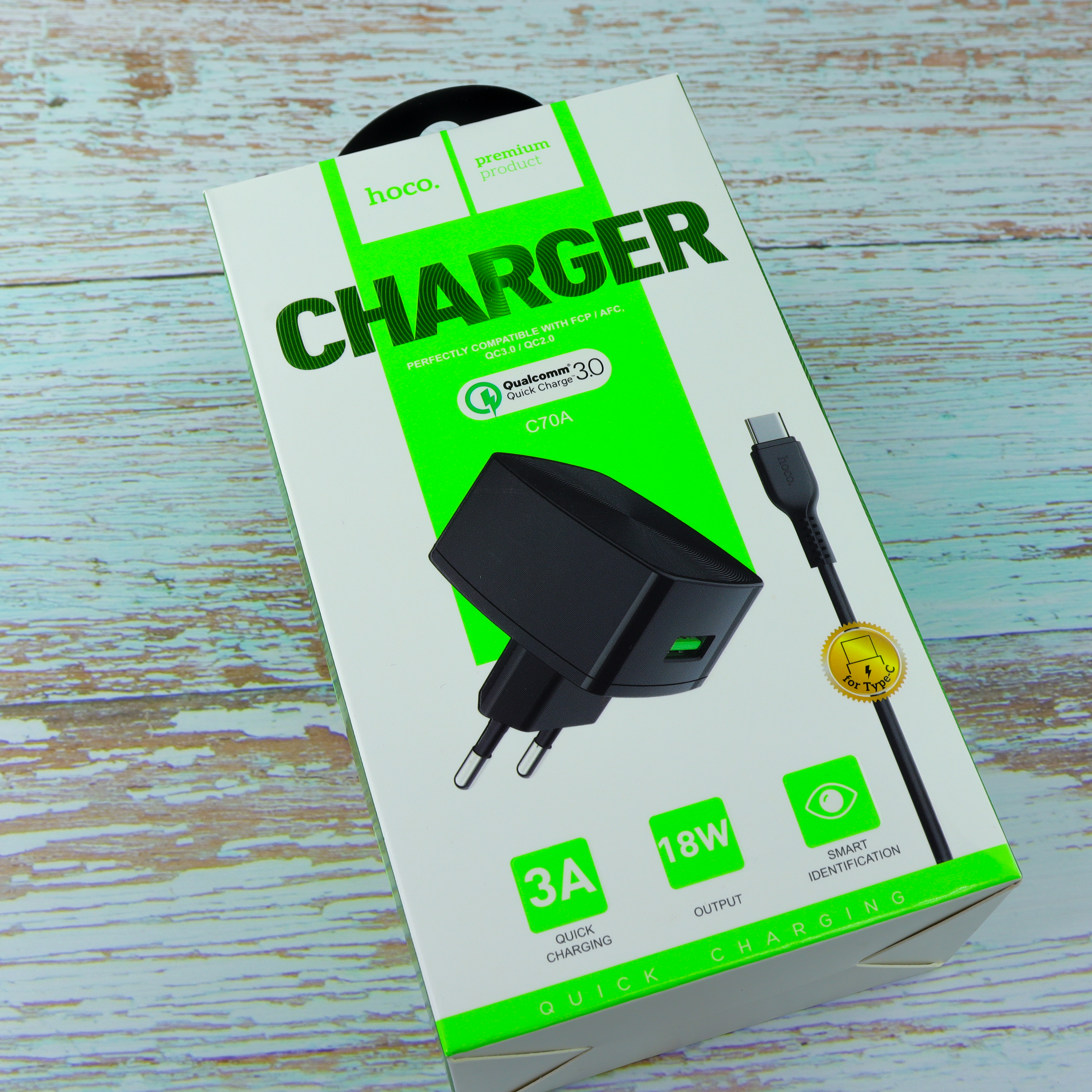 СЗУ Hoco C70A Cutting-edge single port QC3.0 + Type-C, white