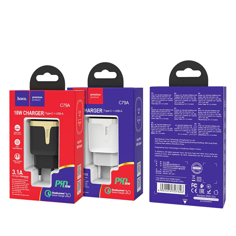 СЗУ Hoco C79A Zeus PD+QC3.0 charger, white