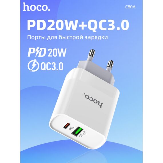 СЗУ HOCO C80A Rapido PD20W+QC3.0 +Type-C to Lightning, белый
