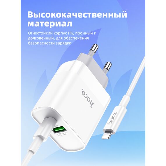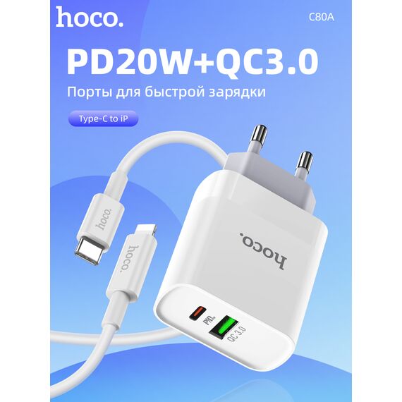 СЗУ Hoco C80A Rapido PD+QC3.0 charger set (Type-C to Lightning), white