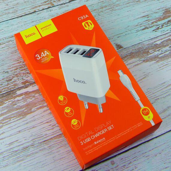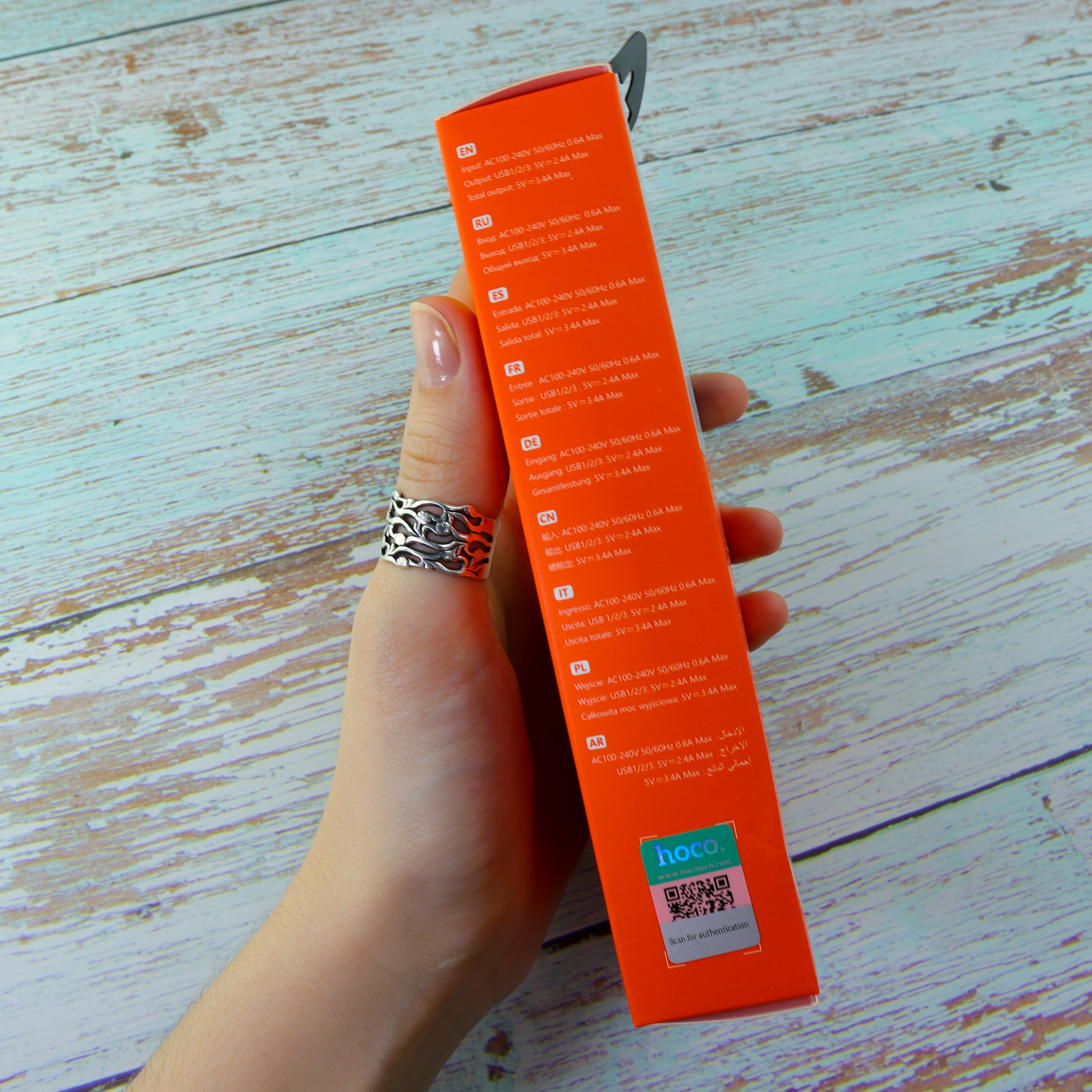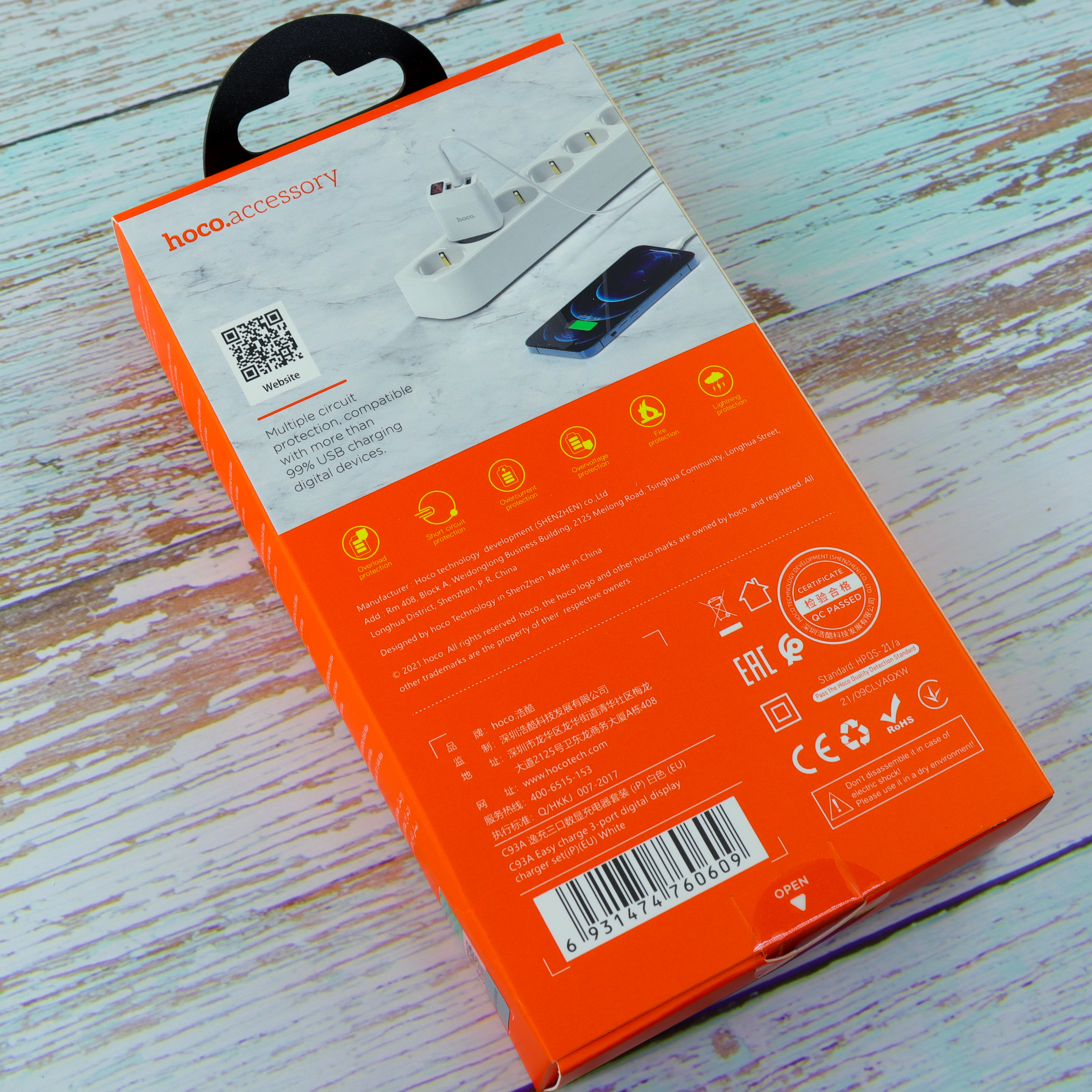 СЗУ HOCO C93A Easy charge 3-port+lightning, white