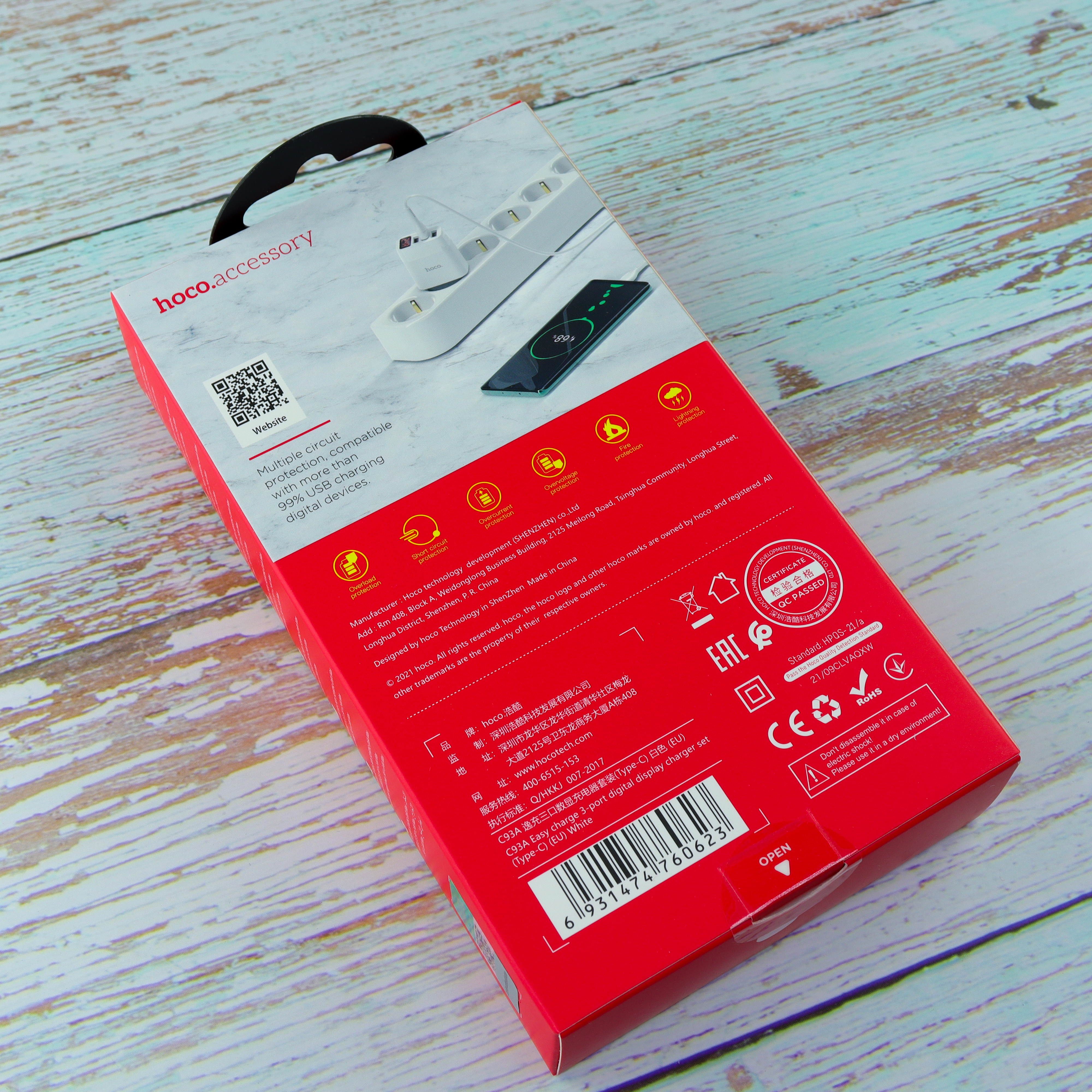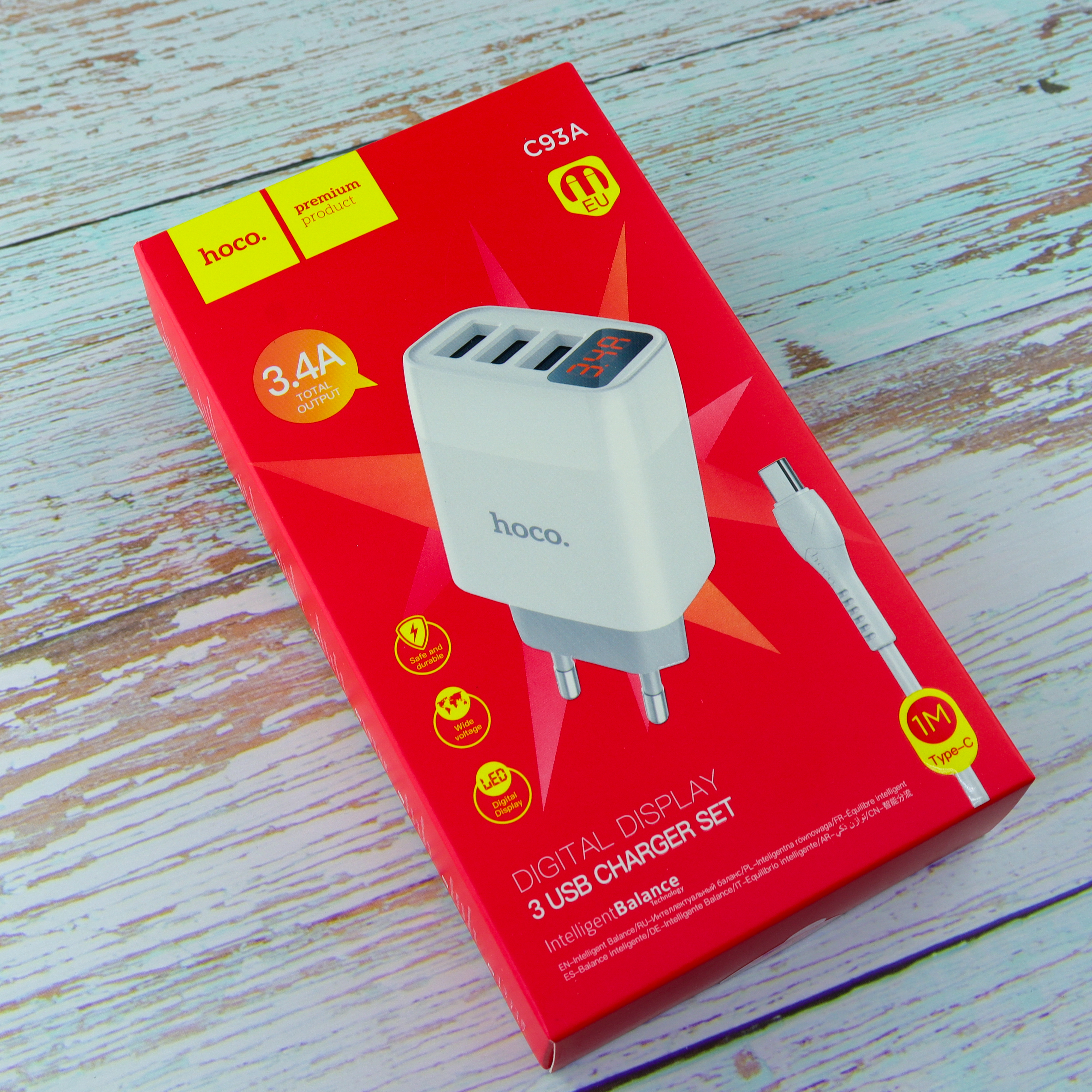 СЗУ HOCO C93A Easy charge 3-port+Type-C, white