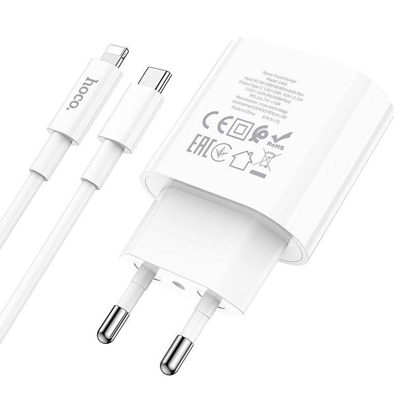 СЗУ HOCO C94A Metro single port PD20W+Type-C to lightning, white