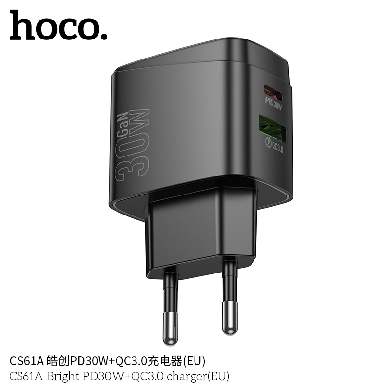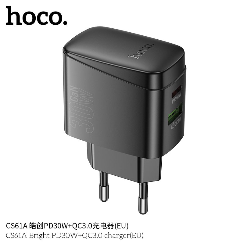 СЗУ HOCO CS61A Bright PD30W+QC3.0 черный