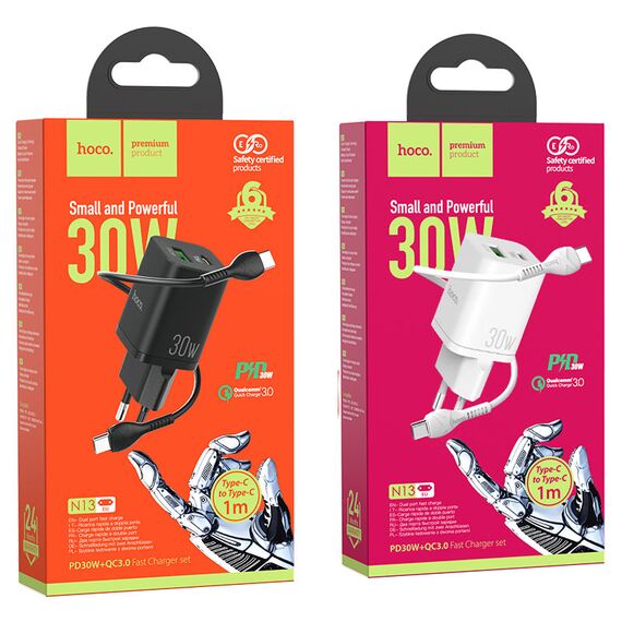 СЗУ HOCO N13 Bright PD30W+QC3.0 charger set (C to iP), black