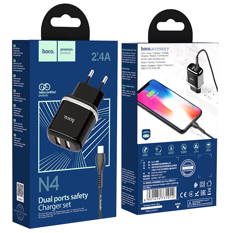 СЗУ HOCO N4 Aspiring 2USB +Lightning 2.4A, чёрный