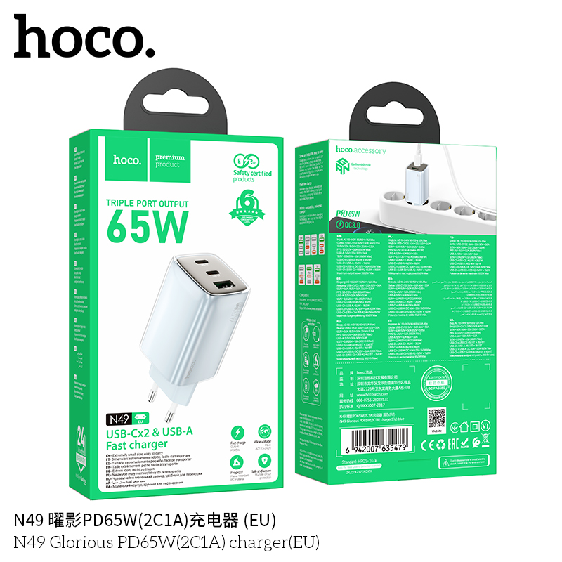 СЗУ HOCO N49 Glorious PD65W2C1A голубой