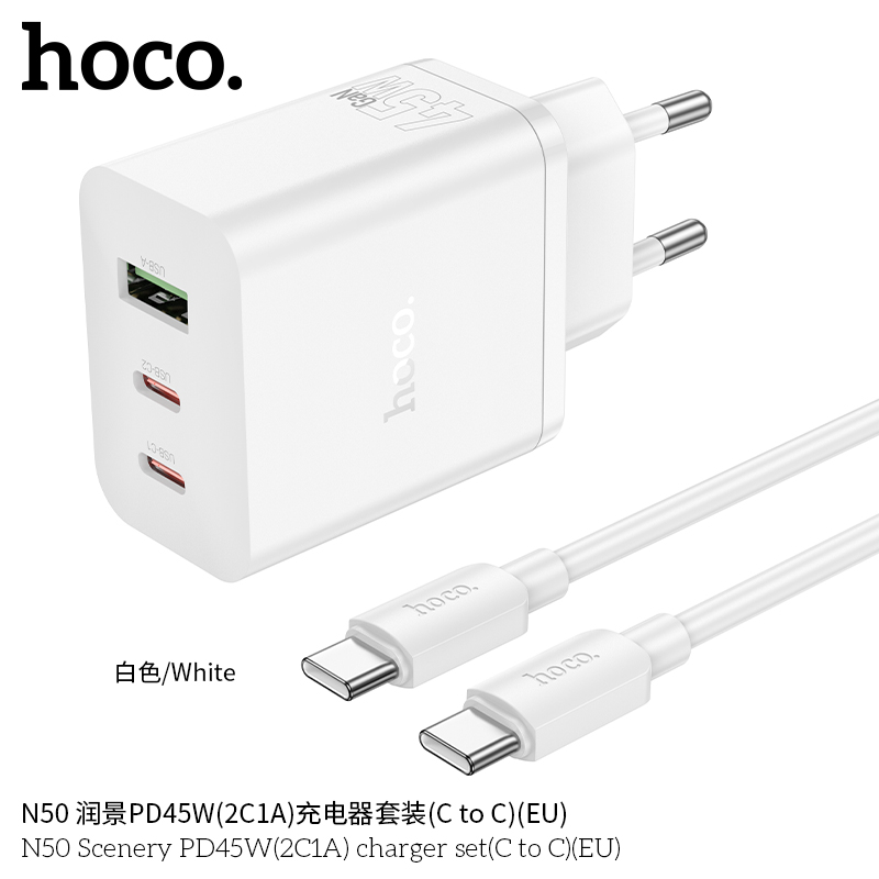СЗУ HOCO N50 Scenery PD45W2C1A cabel Type-C to Type-C белый
