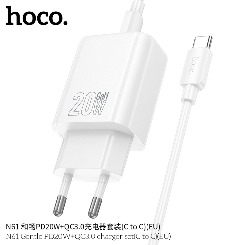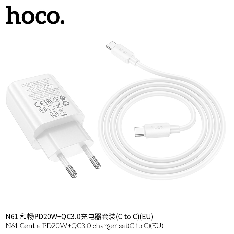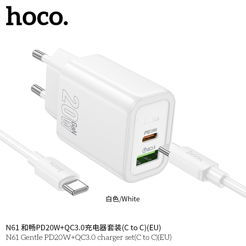 СЗУ HOCO N61 Gentle PD20W+QC3.0 + cabel Type-C to Type-C белый