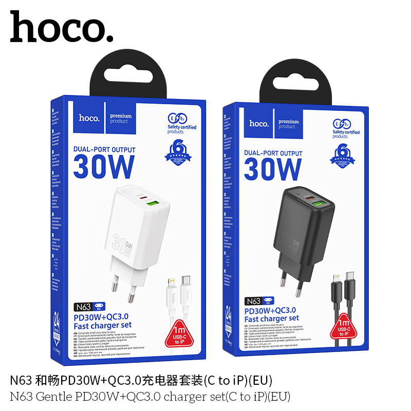 СЗУ HOCO N63 Gentle PD30W+QC3.0 + cabel Type-C to iP черный