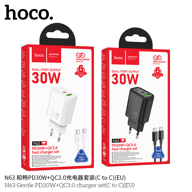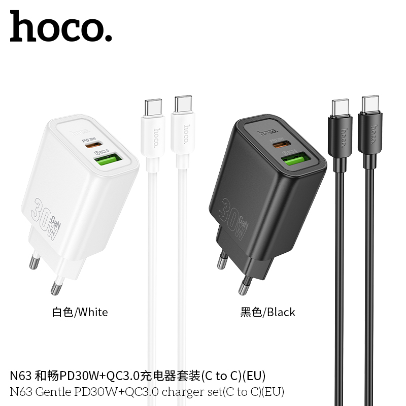 СЗУ HOCO N63 Gentle PD30W+QC3.0 + cabel Type-C to Type-C черный
