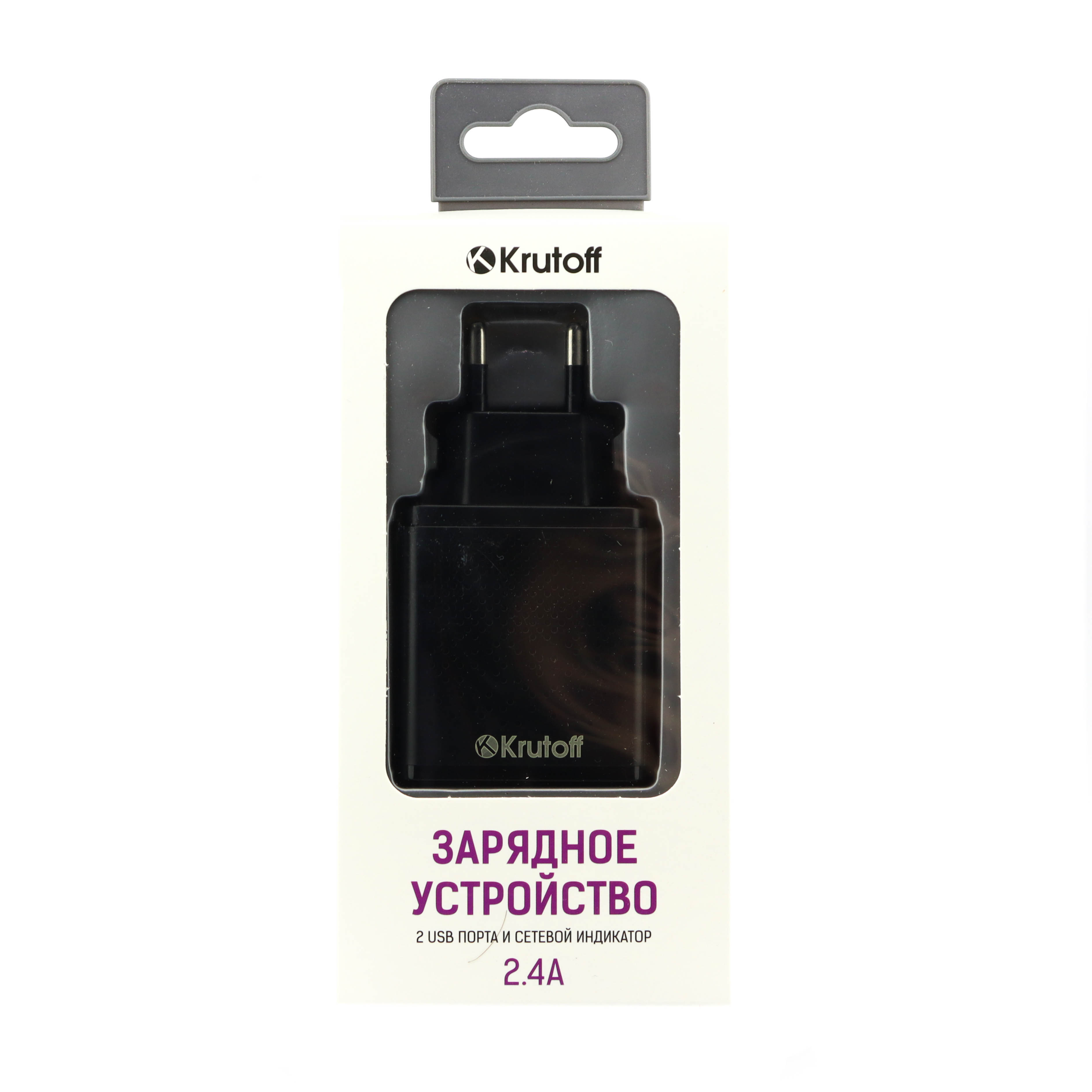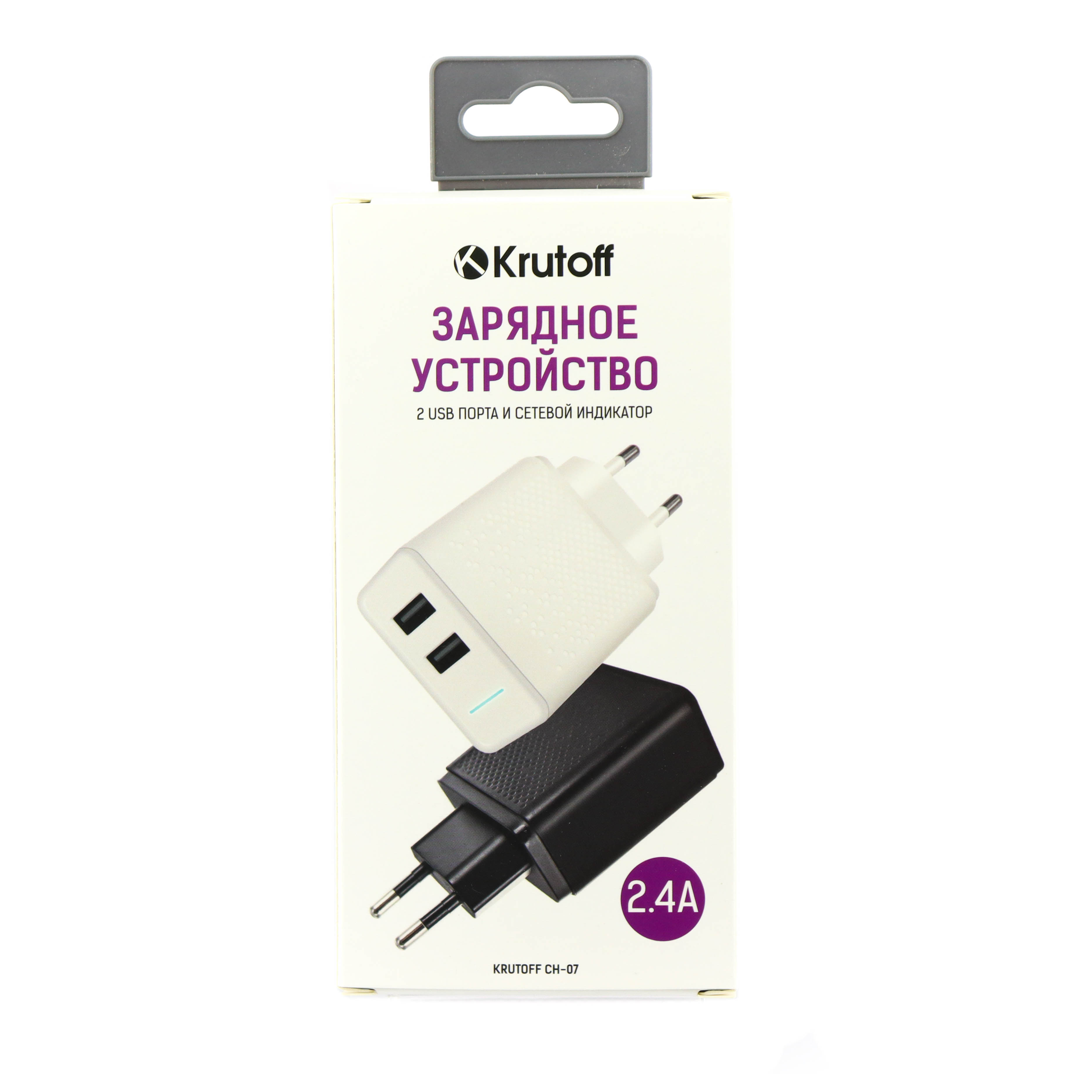 СЗУ Krutoff CH-07M 2xUSB, 2.4A + кабель micro USB (black)