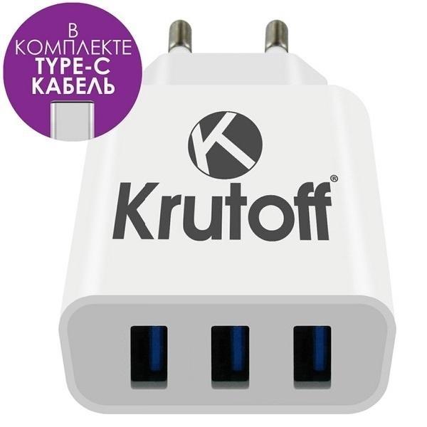 СЗУ Krutoff CH-20 3xUSB, 3.1A + кабель USB Type-Cисключительно для подпитки гаджетов. Корпус зарядного устройства достаточно крепкий и надежный. Высококачественный пластик, из которого сделано устройство, гарантировано не содержит вредных веществ. Помимо прочего, простая монолитная форма делает зарядку менее чувствительной к повреждениям.