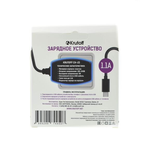 СЗУ Krutoff CH-23 micro USB, 1.1A
