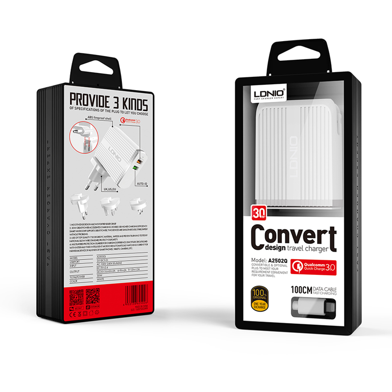СЗУ LDNIO A2502Q + Кабель Lighting QC 3.0 2 USB Auto-ID Выход: 5V-9V-12V, 30W White
