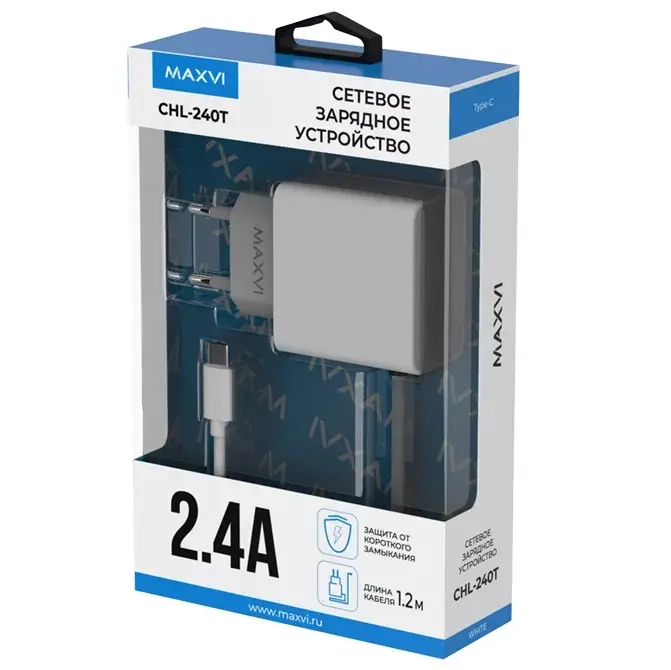 СЗУ Maxvi CHL-240T 2.4A, with Type-C cable, white
