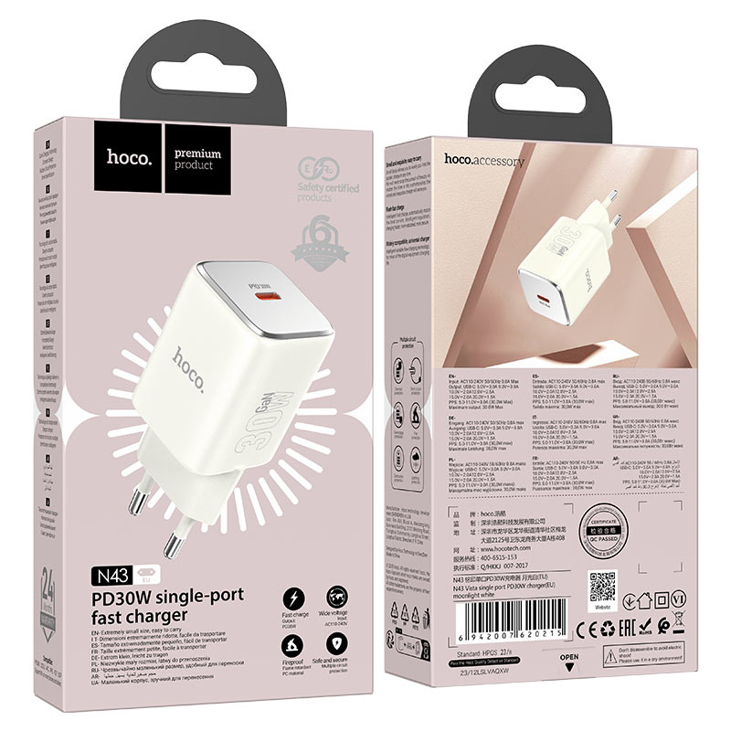 СЗУ НОСО N43 Vista single port PD30W moonlight white