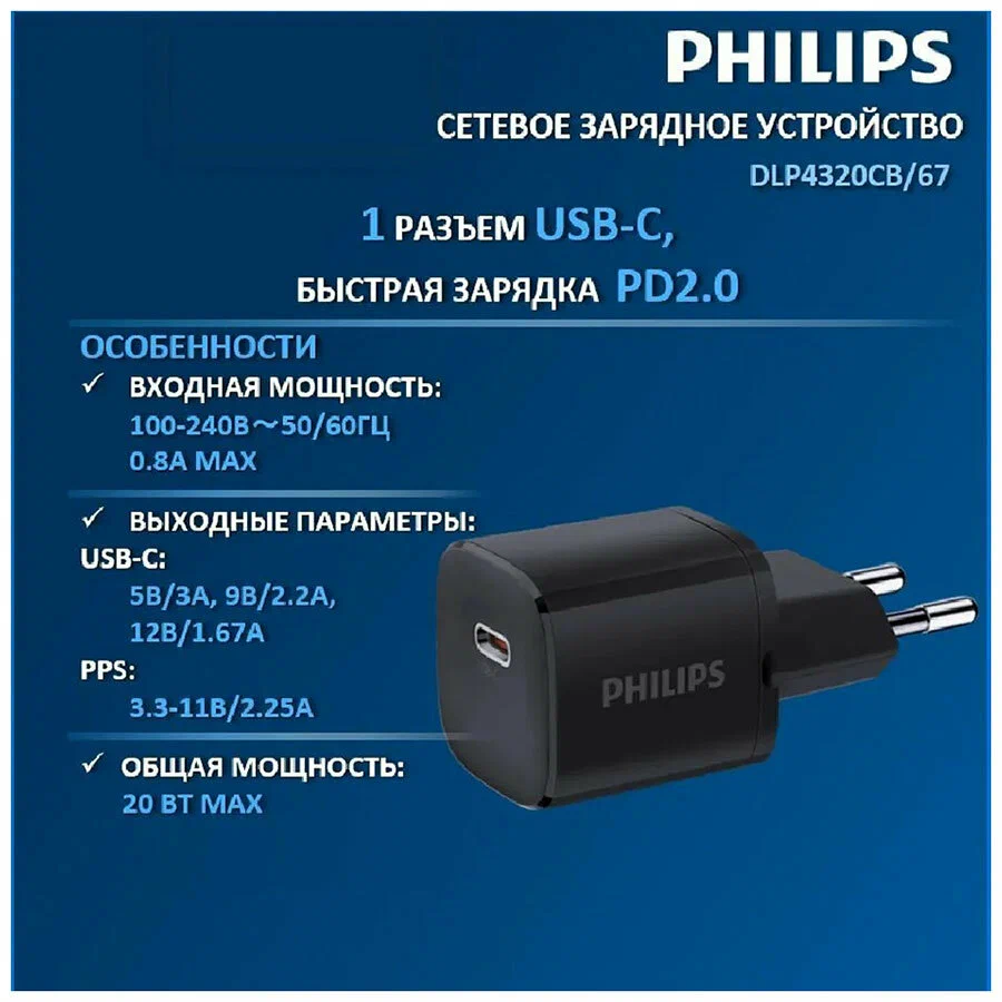 СЗУ Philips DLP4320CB/67 Mini Gan PD20W черный
