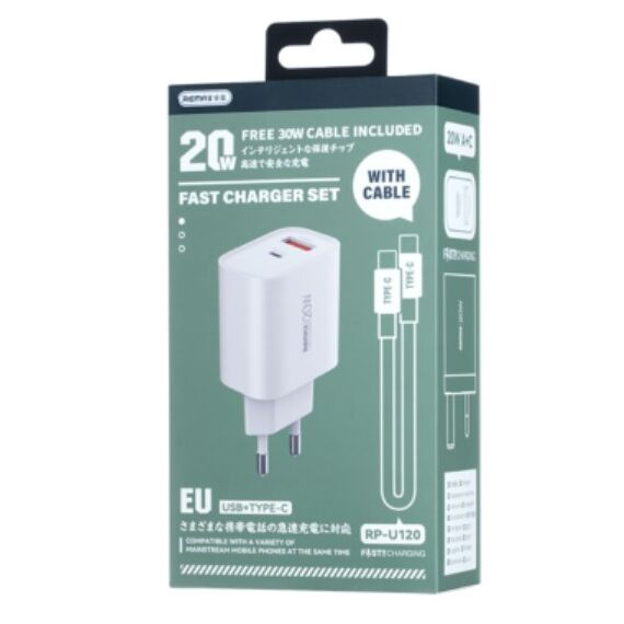 СЗУ REMAX RP-U120 20W A+C Charger+C-C Cable Set EU White