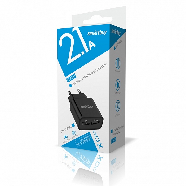 СЗУ SmartBuy® FLASH, 2.1 А+1 А , черное, 2 USB (SBP-2010)
