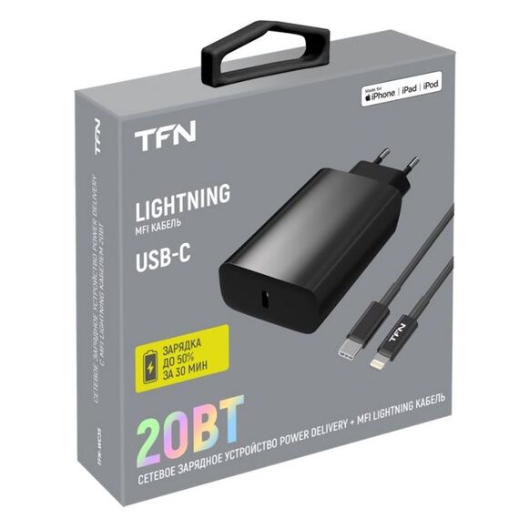 СЗУ TFN (TFN-WC35) TypeC, 20W с кабелем Lightning MFI (черный)