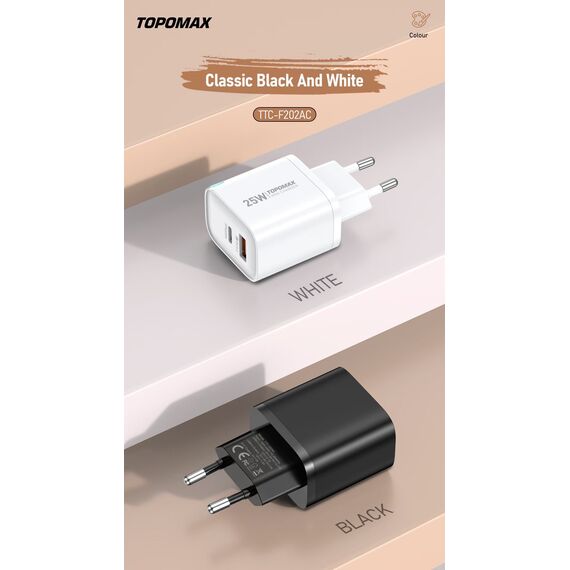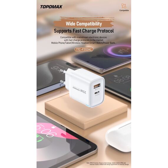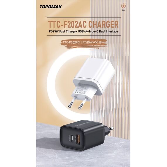 СЗУ TOPOMAX TTC-F202AC PD 25W, QC18W, USB-A, USB-C белый