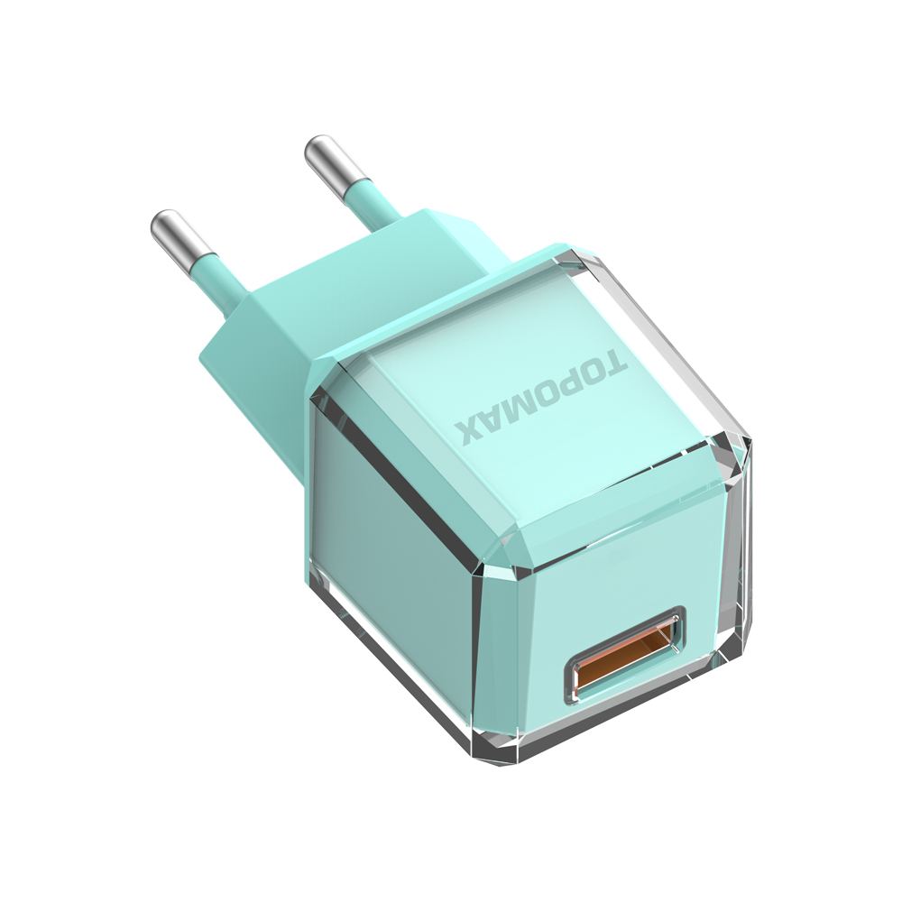 СЗУ TOPOMAX TTC-F20A Type-C QC 3.0, Fast Charger, USB-A, 18W + cabel Type-C green