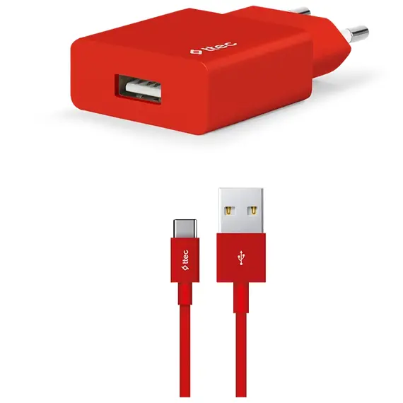 СЗУ TTEC 2SCS20CK SmartCharger Travel Charger 2.1A Type-C Cable Red