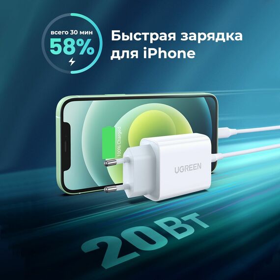 СЗУ Ugreen CD137 (60450) Fast Charging Power Adapter With PD 20W EU white