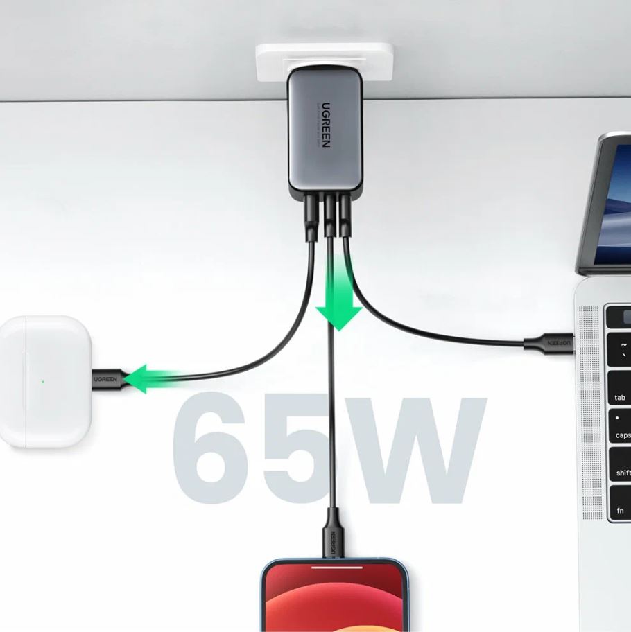СЗУ UGREEN CD244 (10335) Nexode USB-A+2*USB-C 65W GaN Tech Fast Charger EU черный