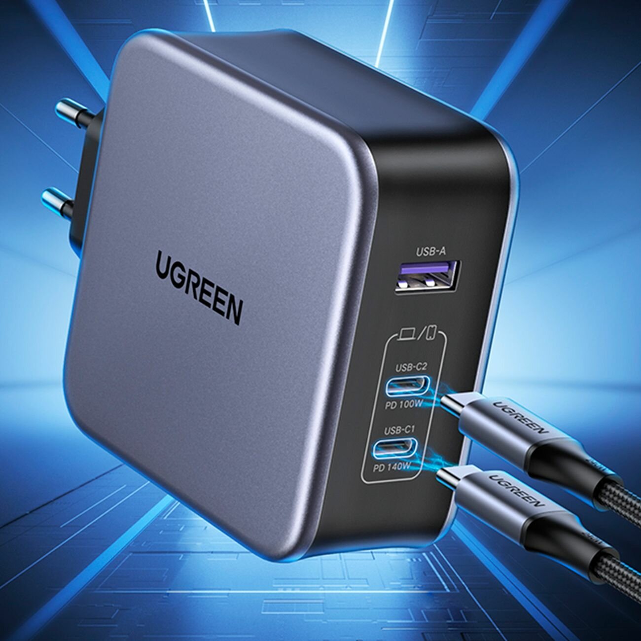 СЗУ Ugreen CD289 (90549) USB-A+2*USB-C 140W GaN Tech Fast Charger with C to C Cable 2м Black