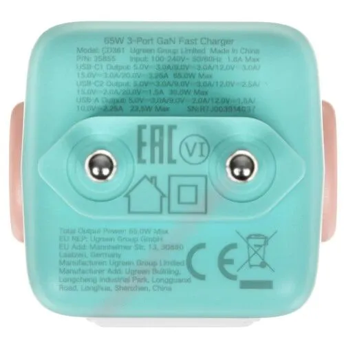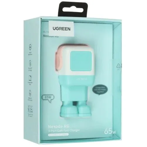 СЗУ UGREEN CD361 (35855) Uno 65W USB-A+2*USB-C Robot GaN Tech Fast Charger EU Pink-Blue