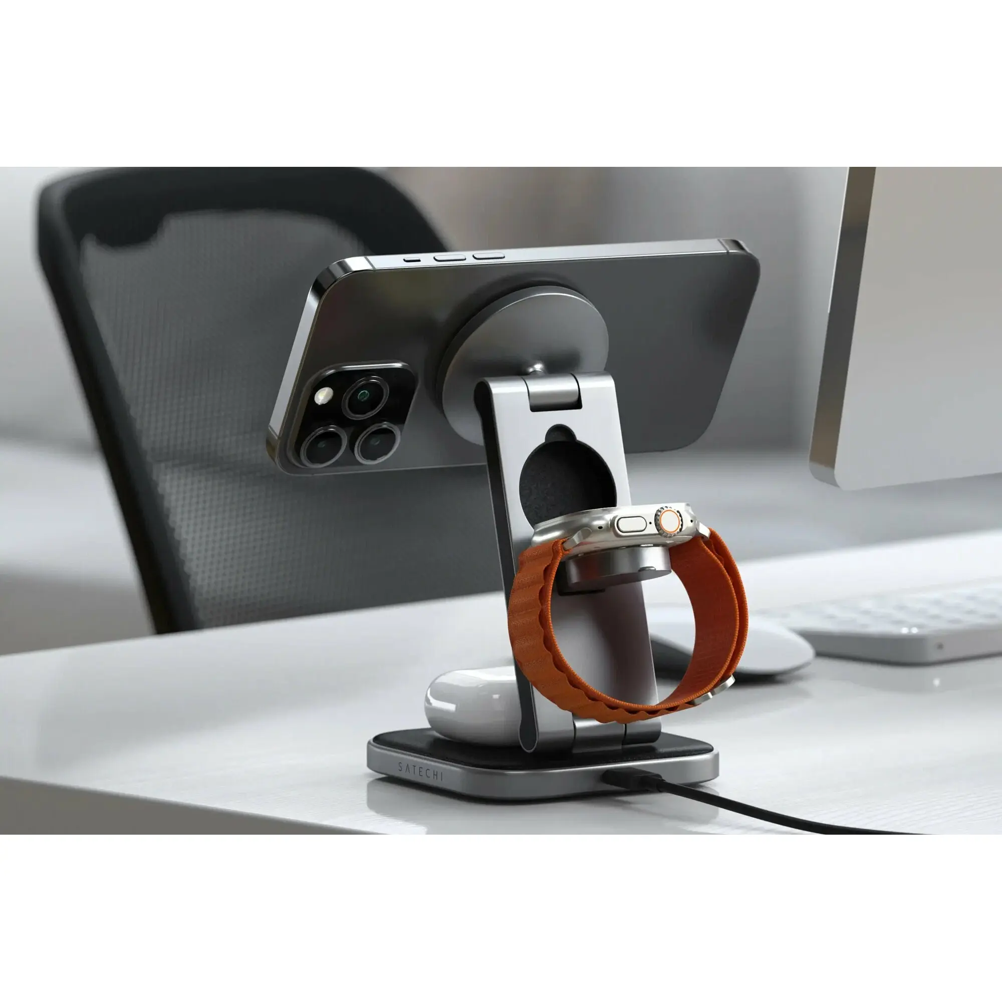 Зарядное устройство Satechi ST-Q31FM-EA 3-in-1 Foldable QI2 Wireless Charging Stand Space Gray
