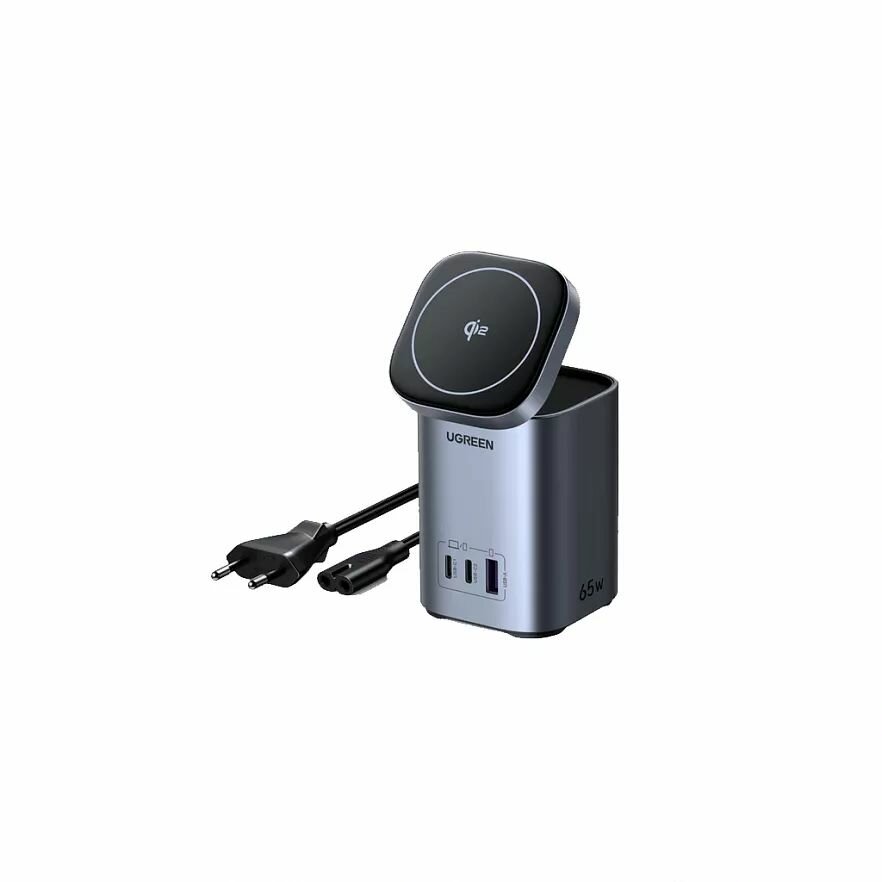 Зарядное устройство UGREEN X555 (55321) 65W 2-in-1 GaN Desktop Magnetic Wireless Fast Charger EU Gray