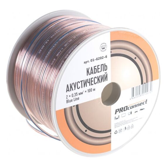 Кабель акустический PROconnect 01-6202-6 2х0,35мм² прозрачный BlueLine 100м